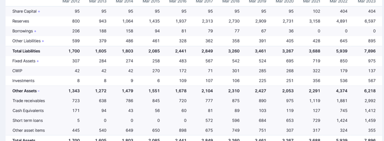 Since there may be some years when enough cashflow ( notice first row in the pic) not being generated which is absolutely normal, we look at 5 year CFO/PAT, which is only 56% ( CF0 - 2050cr against PAT 3640cr), way behind the acceptable mark. If we look at peer Affle India, generating CFO/PAT > 80% consistently.