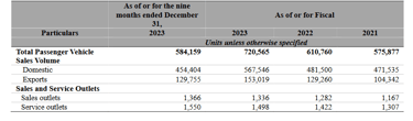 Hyundai Motor India (HMI) is a part of the Hyundai Motor Co (HMC) Group, third largest auto OEM in the world in CY2023 and 2nd largest domestic auto OEM in the Indian passenger vehicles market according to the CRISIL Report, operate through 13 vehicle models. They are the largest exporter of PV from India. HMI contributed 18% of HMC's global sales in CY 23. They aim to become an export hub for HMC for exports to emerging markets including South Asia, Latin America, Africa and Middle East through 82 international distributors.
